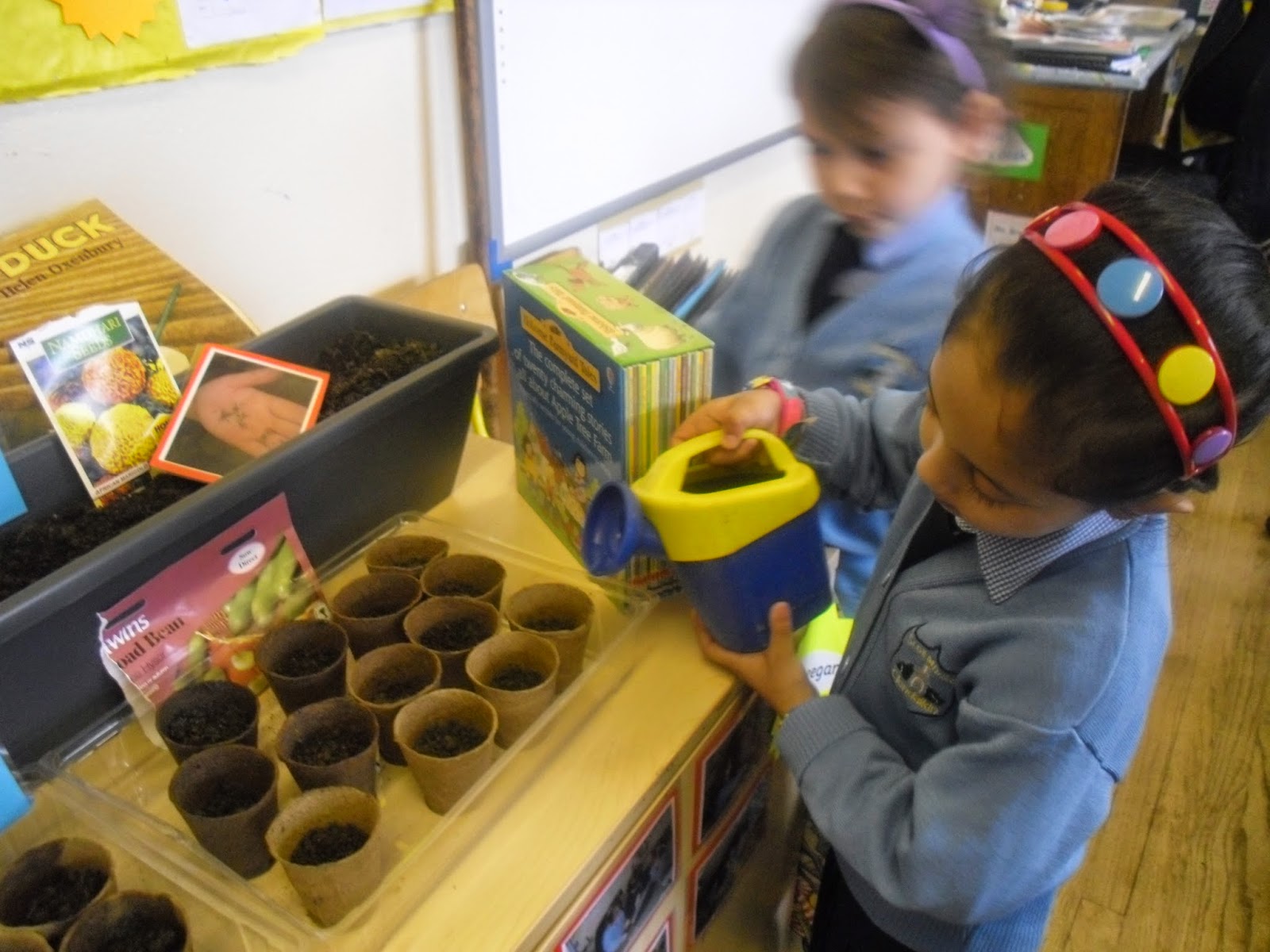 We are really excited in Room 4. The beanstalks and Marigolds we planted last week have started to grow!